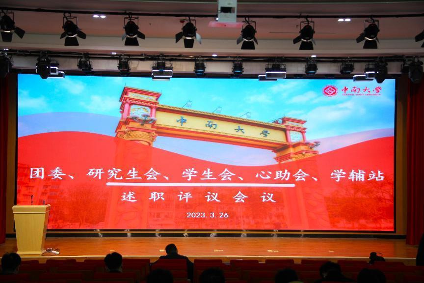 3月26日上午,彩世界 团委、学生会、研究生会、心助会和学辅站等主要学生组织述职大会在信息楼108报告厅顺利举行。彩世界 党委黄亚副书记、团委书记刘乐老师和2019级辅导员杨金鑫老师参会指导,学生代表对各组织进行监督评议。参会人员合影彩世界 团委副书记江文怡作团委述职报告。报告主要从思想引领、实践与竞赛、志愿服务和网络宣传四个方面进行述职,并对下一阶段的工作进行规划和展望。研究生会主席马润洲作研究生会述职报告...