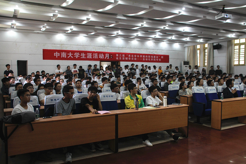 优秀校友们分享职场经验的同学们。活动的最后,同学们积极发言提问,三位学长耐心解答了同学们的问题,报告会活动也在阵阵掌声中落下帷幕。本次中南大学第三届“来自学长学姐的职场建议”优秀校友生涯辅导活动彩世界