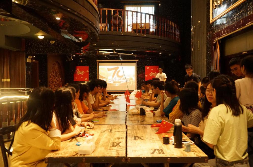 活动伊始,同学们组织了“七十年建国风雨征程”交流会。主持人钟宇泽同学带领大家一起回忆了中华人民共和国从建国到改革开放,再到建设社会主义现代化强国的不平凡岁月。交流会期间,同学们踊跃发言,共同回顾七十年来新中国的风雨征程,并各自讲述了自己和祖国一起成长的故事。