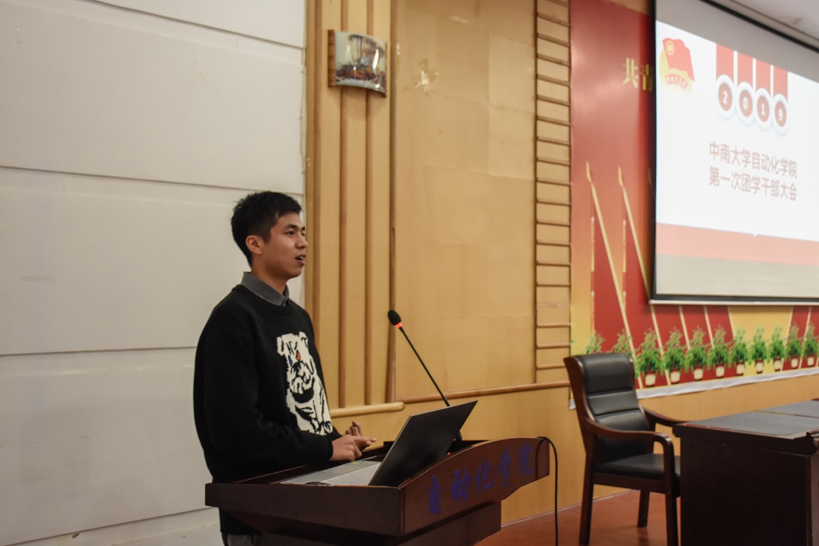 会议还邀请中南大学研究生会主席、17级控制专业研究生鲁凡磊学长分享学生干部工作经验,他认为,学生干部要高度工作自觉、有责任担当,要保持学生干部初心,牢记为同学服务的宗旨,在服务他人中锻炼自己,同时要学会平衡学习与工作的关系,品学兼优才能树立良好榜样。