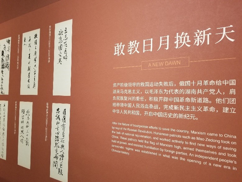 展览里重点强调了湖南在近代革命历史中举足轻重的特殊地位。从洋务运动到维新变法,再到辛亥革命、五四运动等,无数湖南籍的仁人志士在中华民族救亡图存的道路上前赴后继,积极探索中国的发展道路,最后终于完成新民主主义革命,建立中华人民共和国,开启了中国历史的新纪元。
