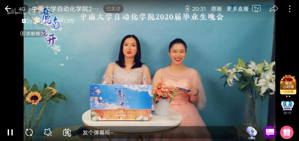 领导老师为毕晚倾情寄语,熟悉的辅导员们变身网络主播,晚会以主题视频《麓南花开》开场,将同学们带回了中南的校园时光,直播室气氛活跃,弹幕不断刷屏。相声《中南新闻联播》承包了整场晚会的笑点,晚会在全体毕业班班长合唱《不说再见》中落下帷幕,穿插了四年大学回忆的歌曲mv,让同学们纷纷泪目。
