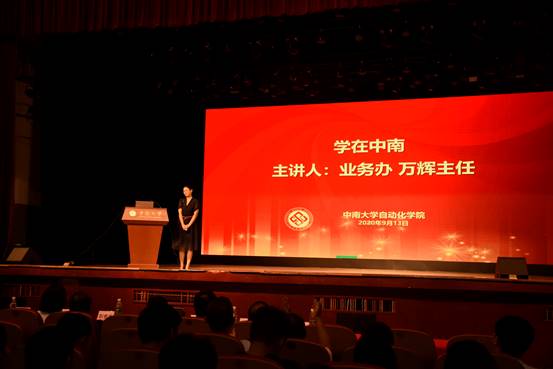 教务办万辉主任发表了以学在中南为主题的演讲。万辉主任为学生梳理了未来的教学环节,主要分为本科教学管理情况与特色培养项目两个方面,介绍了大类分流,转专业、保研的注意事项与维纳班、湘江人工智能班与卓越人才培养实验班等。