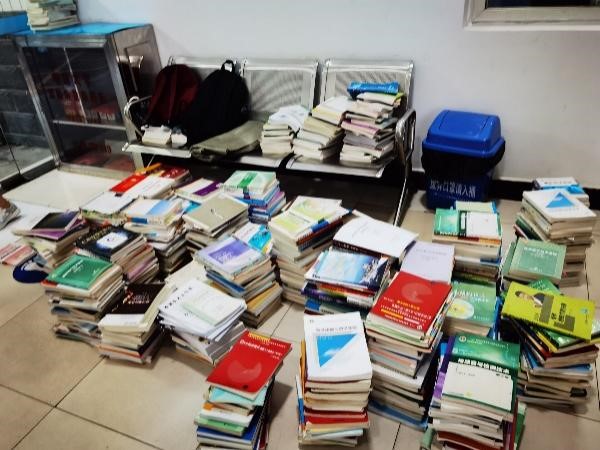 提前两周开始进行线上宣传,年级群通知、线上推送、口口相传,很快已经传遍了全院每个角落。另外,全体助理团队提前一周进行扫楼收书,主要针对大四即将毕业的毕业班学生和大三即将搬宿舍的学生,学生们也积极配合,提前整理好自己要捐赠的书籍,整齐地摆放在门口,书籍收集起来后进行分门别类、装袋并运至活动室保存。