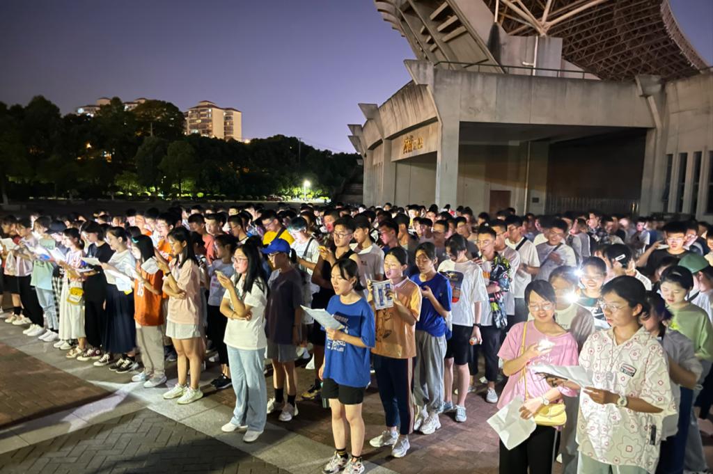 夜幕沉沉,犹有路灯闪烁着微弱的光芒。歌声缭绕,夜空包裹着大一新生,他们也包裹着中南。“我们走在大路上,意气风发斗志昂扬……向前进,向前进!朝着胜利的方向!”是的,夜晚可以不只是静谧与安宁,可以不只有悠扬的摇篮曲,夜晚也可以是昂扬、充满朝气的。毕竟,如朝阳一般充满活力的少年们赋予了它无限可能。