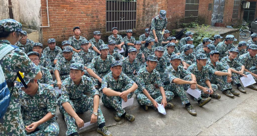 2021级新生们。“军帽需整理出棱角,外套上的拉链拉好,纽扣系好,腰带系紧……”教官的话响起,驱走那磨人的困意。每天的军训从规范的仪容开始,从有序的队列开始,从蓬勃的朝气开始!