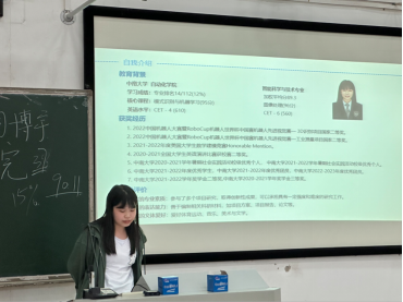 直博至中南大学的熊蓉琪同学在已分享经验的基础上,补充介绍了保研需要的简历、自我介绍、英语面试等材料的准备技巧,分享了自身直博经验,并鼓励大家充满自信,勇于在面试中展现自己。
