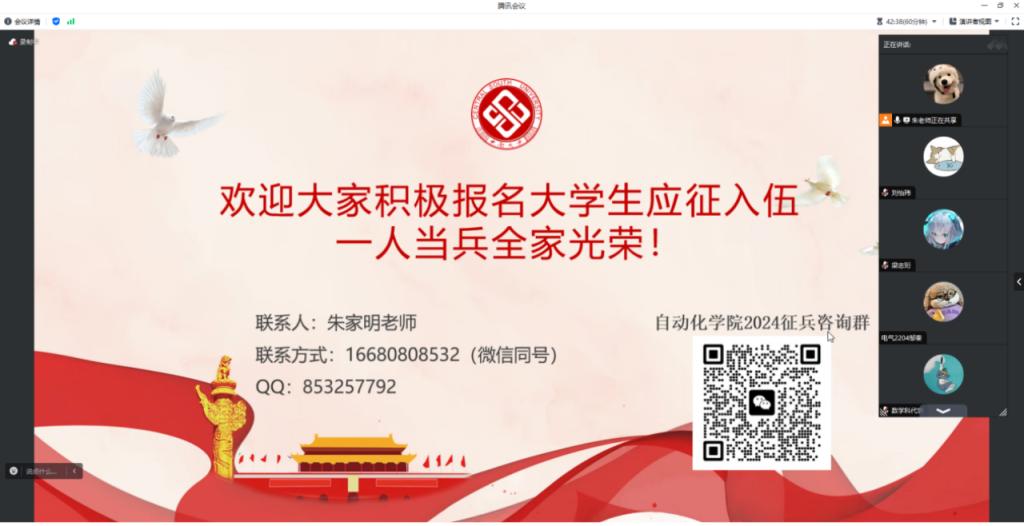 会议开始,国防教育专干朱家明老师介绍了学校2024年大学生应征入伍的相关政策。他提到彩世界