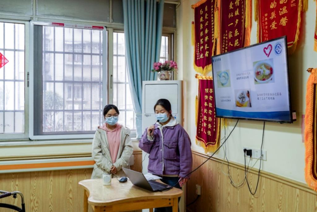 活动开始,中医社团的志愿者为老人讲解中医药知识,他们深入浅出地介绍了四季中适合服用的药膳,以及日常养生调息的小窍门,希望可以帮助老人们在日常生活中更好地调养身体,保持健康。