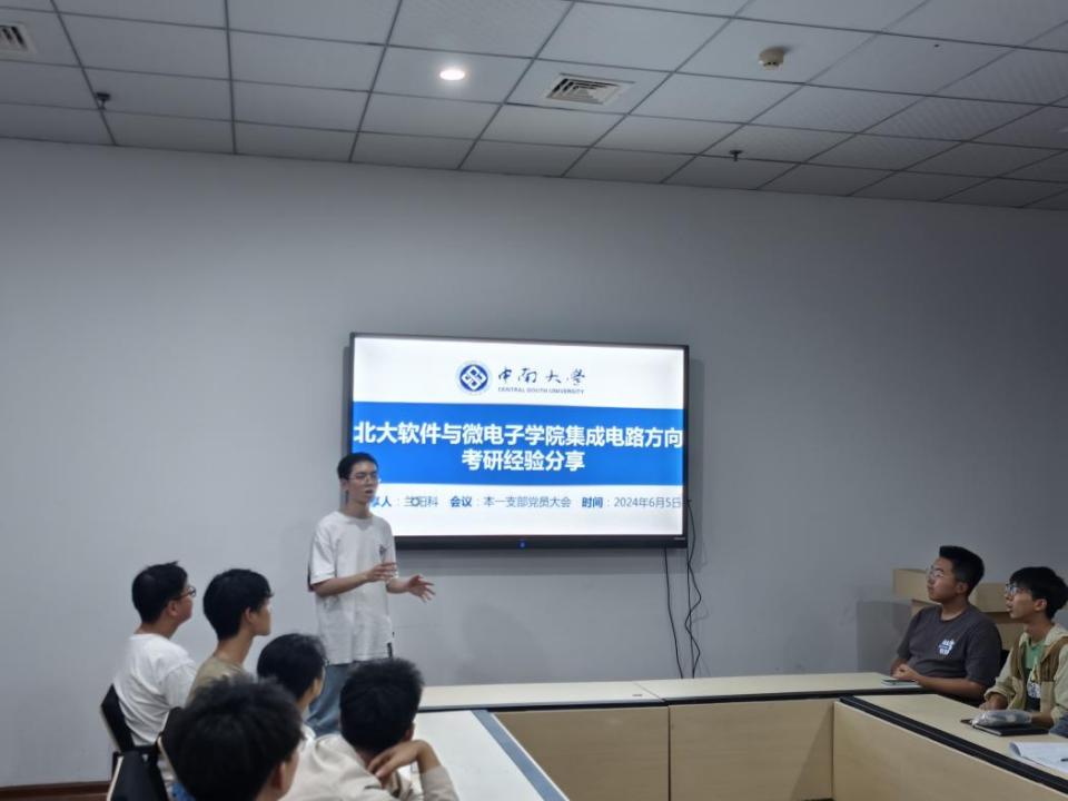活动伊始,毕业生党员兰阳科、侯翔宇以及苏玥分别就考研、保研和考公三个方面分享交流经验。考研至北京大学的兰阳科同志从前期准备、备考经验和考后感悟三大方面详细介绍了考研流程、时间节点和注意事项,并给出了对于考研同学的真诚建议;保研至上海交通大学的侯翔宇同志介绍保研过程中的重要节点、前期准备、考察内容等,并提供了如何准备保研面试等建议;考公至珠海市海关部门的苏玥同志分享了自己准备考公过程中的心得,提供了实用的备考策略。