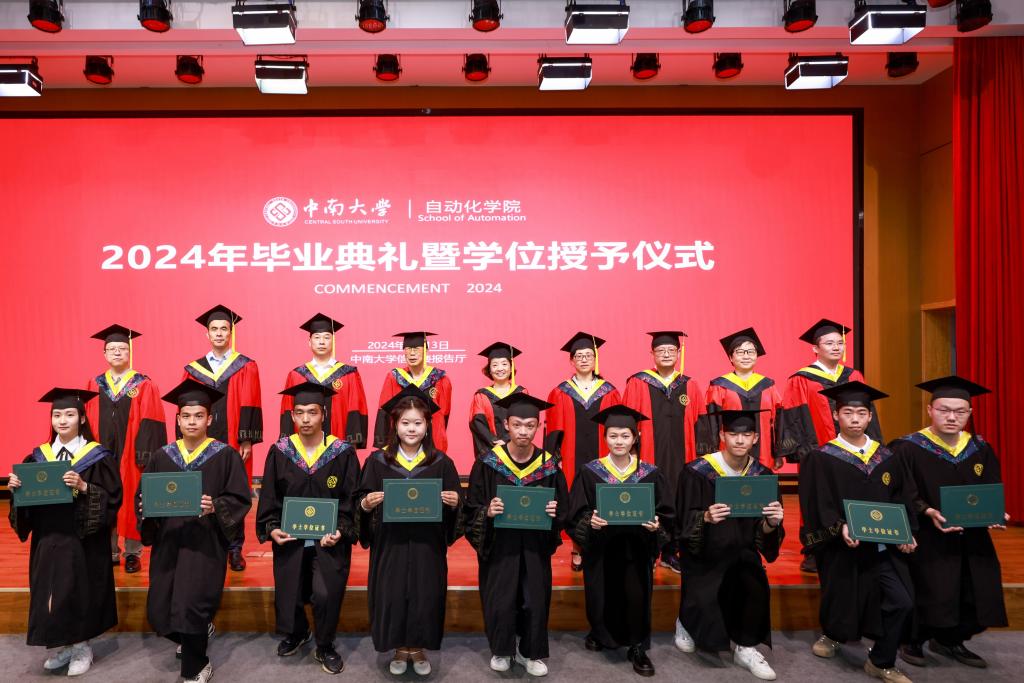 院训,迎接未来无限可能。研究生毕业生代表控制科学与工程博士刘晨亮则分享了自己在学术道路上的坎坷与挑战,鼓励大家天道酬勤、坚持不懈地探索求知。教师代表、教育部青年长江学者、自动化系孙备教授在发言中深刻阐释了中南大学的求实精神,并引用了桂卫华院士的“老老实实为人,踏踏实实做事”的教诲,激励毕业生们将个人命运与祖国紧密相连,在新时代书写属于自己的华章。