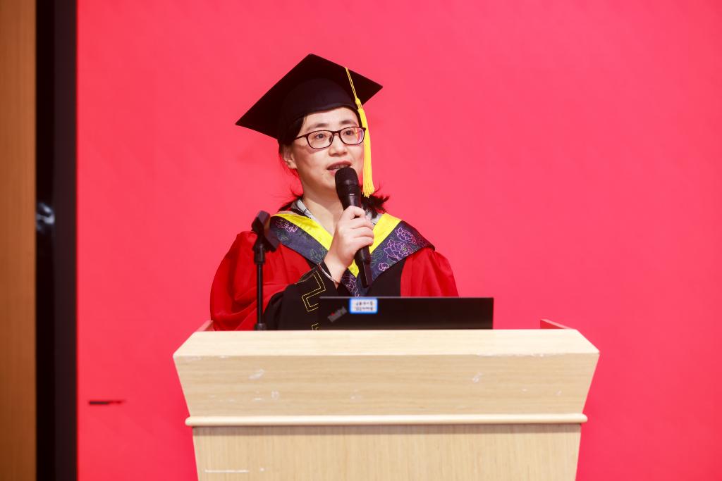 向全体毕业生表达了最真挚的祝福,赞扬了他们在求学期间展现出的坚韧毅力和卓越才智。她提出了三点殷切期望:一是坚守信念,勇担使命,为实现中国梦贡献青春力量;二是践行知行合一的校训,用实践的光芒照亮理想的道路;三是培养创新思维,勇于突破,为构建人类命运共同体贡献智慧,并祝福同学们以坚定的步伐,跨越山海,追逐梦想,书写人生新篇章!