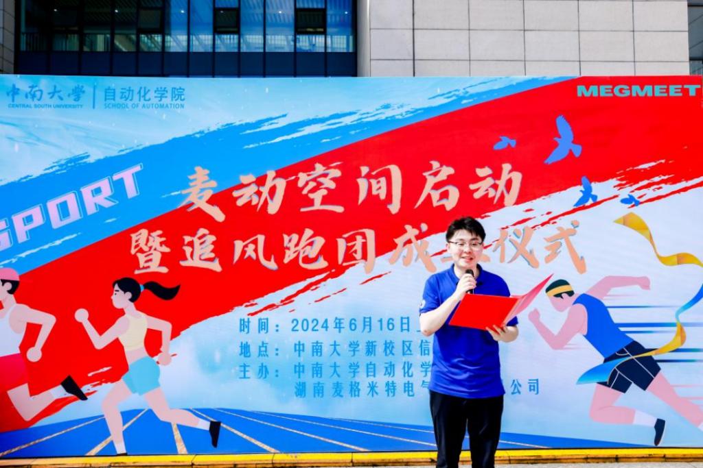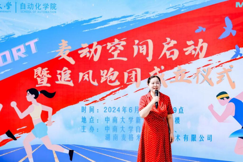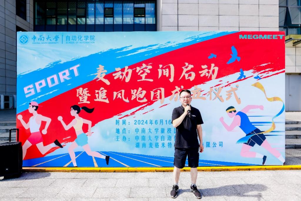 党委副书记黄亚宣布“追风”跑团正式成立,希望与湖南麦米在校园文化建设、科研、人力资源等方面有更深入合作,并号召同学们走出宿舍,迈上跑道,跑出青春力量,跑出健康人生。