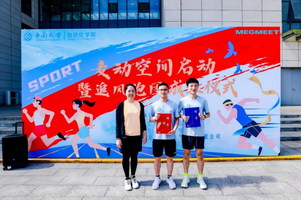 师生“追风”跑团成立仪式在中南大学新校区信息楼正式拉开帷幕。湖南麦格米特电气技术有限公司总经理(2004届中南大学校友)马水、人力行政总监李霞、人力资源主管郑茂娟,彩世界