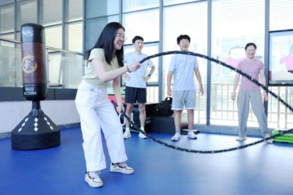 共建,同学们在学习之余,走出实验室即可进入“麦动空间”,选择合意的器材做做力量训练、平衡训练,舒展舒展疲惫的身体,还可以跨上动感单车来一场酣畅淋漓的原地骑行。学办主任张巧丽介绍说,“麦动空间”内设有壶铃、战绳和牛角包等二十余种轻型健身器材和200多米的室内跑道,希望通过在学科楼栋内打造运动空间,营造运动氛围,能对提升学生体育素养发挥积极作用。马水等兴致勃勃地试了试拳击柱,体验了动感单车,大家纷纷笑说又重回青春年代。