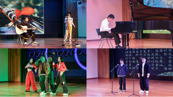 第二轮表演,吴佳明、钟博文携乐器弹唱《寂寞的季节》,深情旋律中满是对生命情感的反思;米笑泽钢琴独奏《彩云追月》,灵动音符引领观众追月彩云间;冉凡可葫芦丝独奏《雨碎江南》,音律声声绘出江南烟雨图;张子悦、席夕焱京剧《清官册·调寇》,凭借扎实功底彰显传统文化魅力。