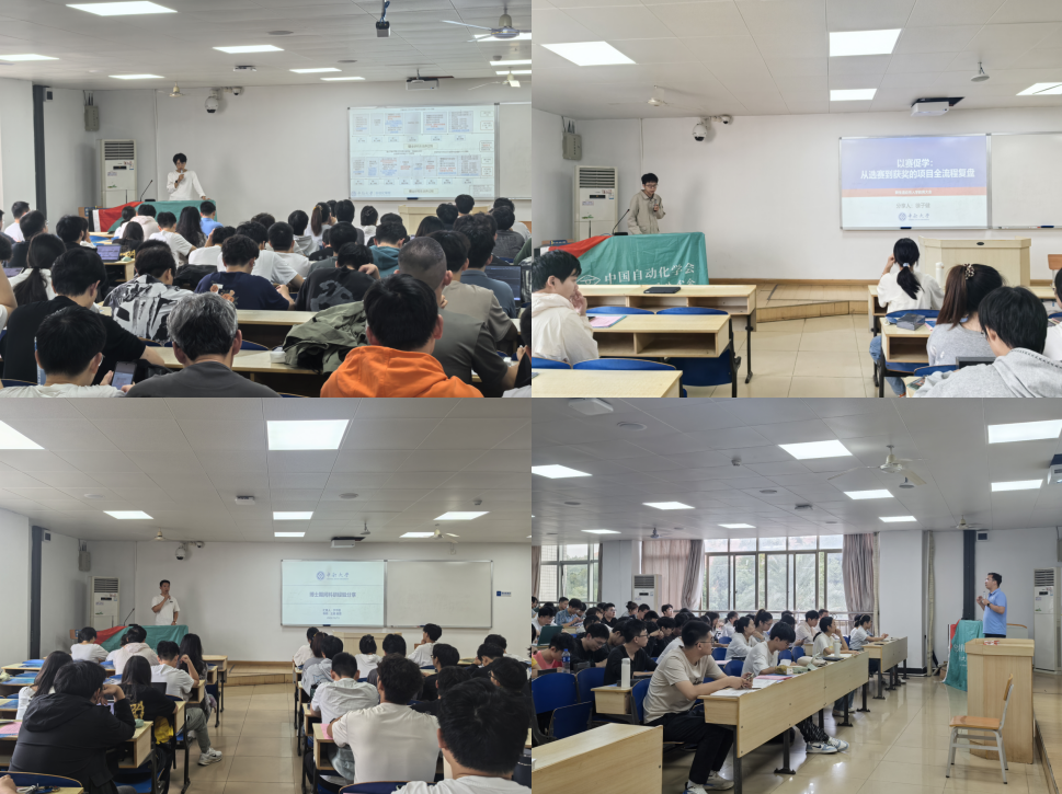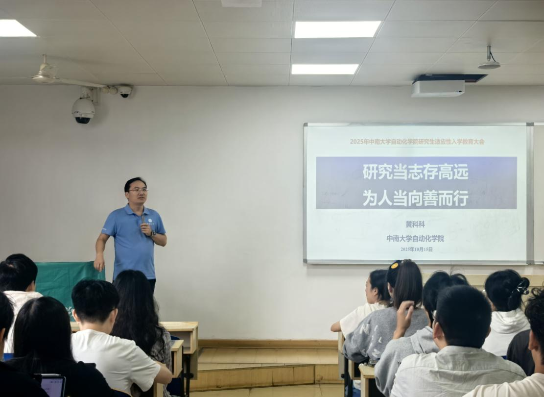 研办胡艳详细介绍了研究生阶段各个培养环节要点。辅导员刘雯就心理健康服务、安全等工作进行了介绍。2020级博士生于千皓同学围绕选题、文献、实验和论文撰写等方面进行科研经验分享。2025级博士生、第20届全国研究生电子设计大赛一等奖得主徐子健同学分享了竞赛经历。