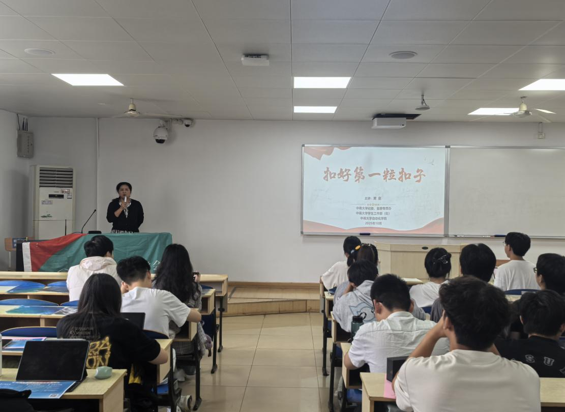 黄亚以“扣好第一粒扣子”为题作廉洁教育报告。她强调,研究生要树立正确三观,坚定理想信念,严守纪律底线,知行合一。她勉励大家将个人理想融入国家发展大局,勇于担当奉献。