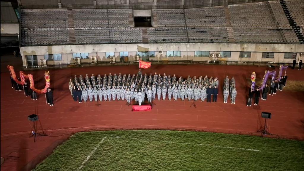 四连学员以饱满的激情演绎《中国军魂》,在恢弘合唱中创新融入铿锵有力的集体朗诵,声浪层层推进,令人心潮澎湃,他们目光坚毅、誓言铮铮,将“狭路相逢勇者胜”的亮剑精神展现得淋漓尽致;五连则在一曲激昂的《精忠报国》中,将刚劲整齐的军体拳表演与灵动穿梭的传统舞龙完美结合,形成刚柔并济的舞台效果,完美诠释了“精忠以壮志,报国生豪情”的深刻内涵。整场活动在热烈的掌声中圆满落幕,充分展现了军训期间学生的良好精神风貌与集体凝聚力。