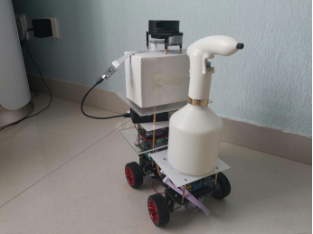 图4 学生发挥专业优势制作参赛作品消毒喷洒机器人