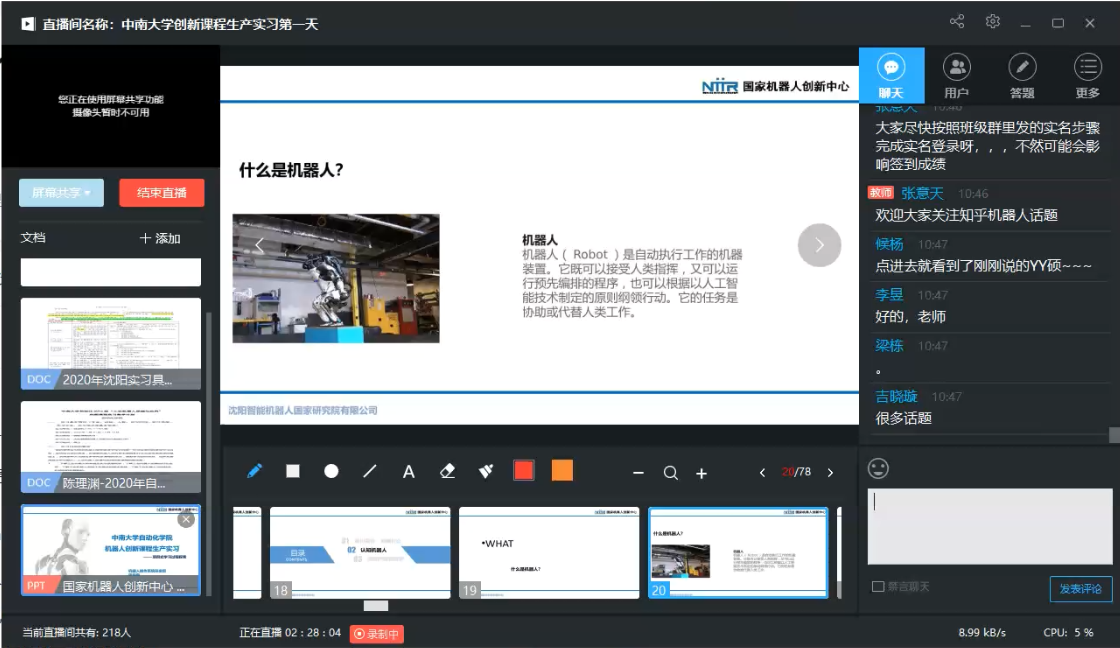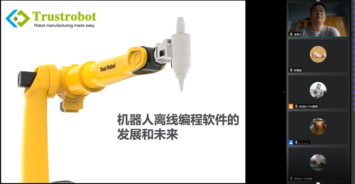此次生产实习过程为线上的机器人实训课程。经过与企业老师进行反复的沟通,制定了详细的线上实习计划。同时结合自动化专业的特点,优选聘请多家制造业、机器人行业的企业专家为同学们呈现各自领域的专业知识和发展态势。