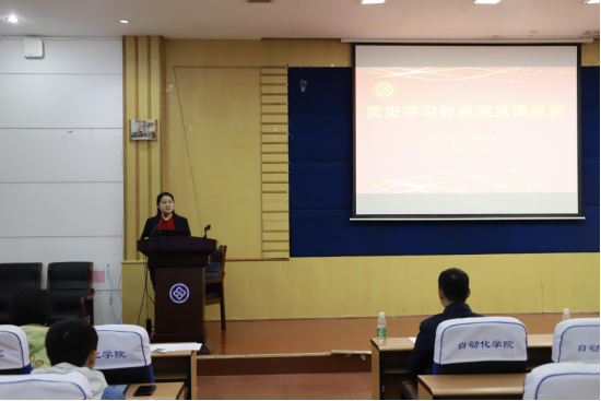 部分科级干部、辅导员以及学生代表担任评委,来自16个支部的党员代表激情开讲,150余名师生党员观摩比赛。
