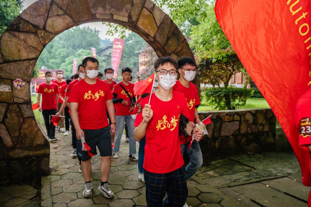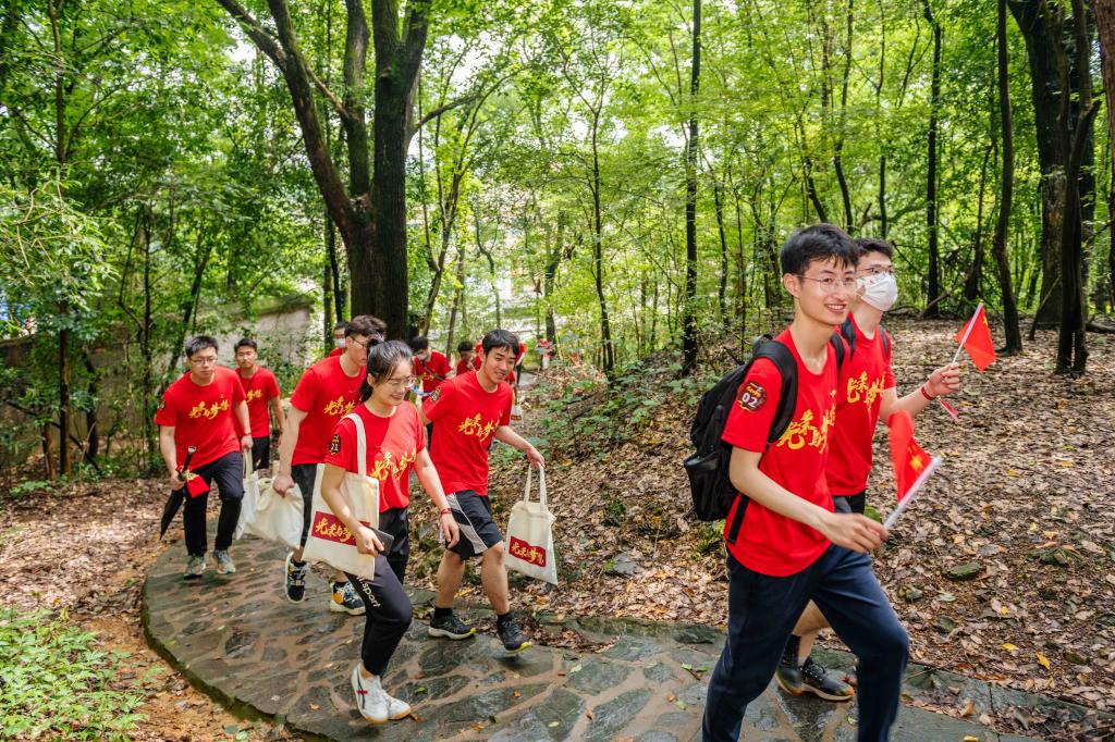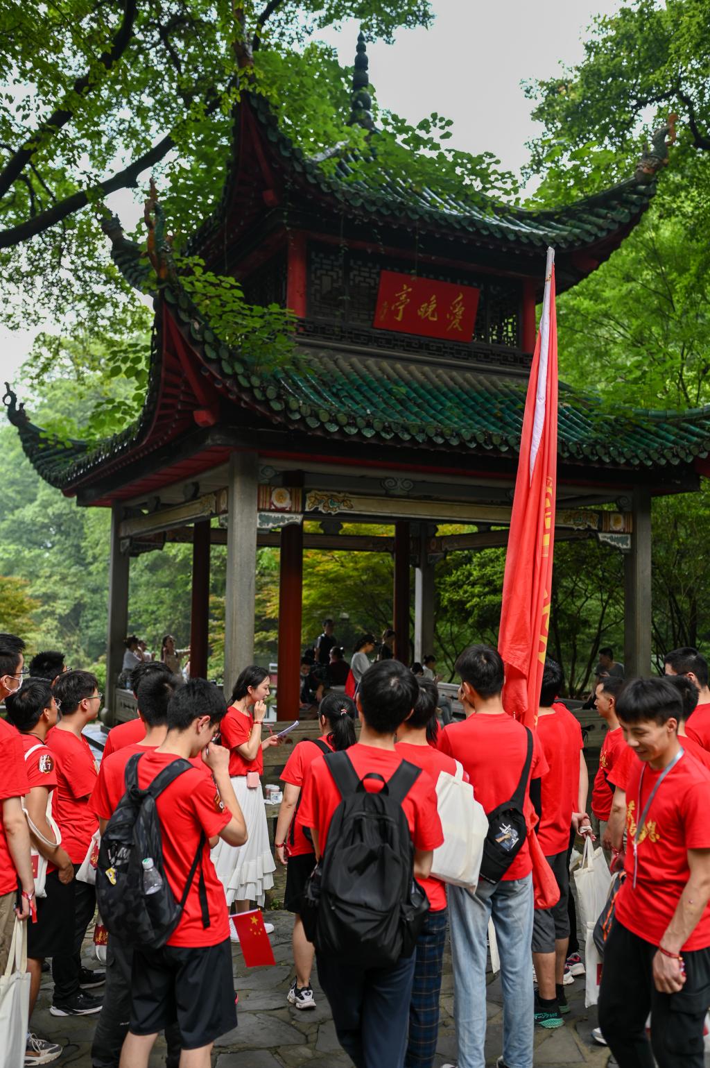 启动仪式后,党员同学们编组列队,徒步攀登岳麓山,打卡红色地标。大家从近现代保护文物、彩世界