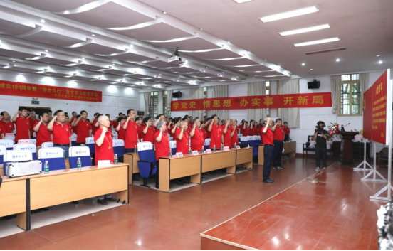 桂卫华院士带领全体与会党员重温入党誓词。大家面对鲜红的党旗,举起右手,握拳宣誓。“为共产主义奋斗终生,随时准备为党和人民牺牲一切,永不叛党”,几代共产党人的初心与使命、迈向未来的责任与信念在掷地有声的誓言中交相辉映、久久回荡。