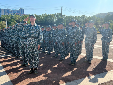 “敬礼”是军训任务中不可或缺的一部分,它能充分表达出对国家的信仰、对人民的热爱。只见同学们笔直站立,等待着排长的演示,目光炯炯、跃跃欲试。排长们开始演示动作,每一次动作之标准都好似在运行编写好的程序,精准而有力。演示完毕,随着“敬礼!”的指令落下,同学们的手迅速抬起,置于太阳穴旁,手背呈一条直线,目光直视前方,身姿挺拔如松。“礼毕!”又见同学们的手整齐放下,似乎刮起了一阵凌冽的风。一个动作需要坚持很长时间,但是没有任何一个同学懈怠,此刻,同学们宛若真正的军人,心怀信念,熠熠生辉。