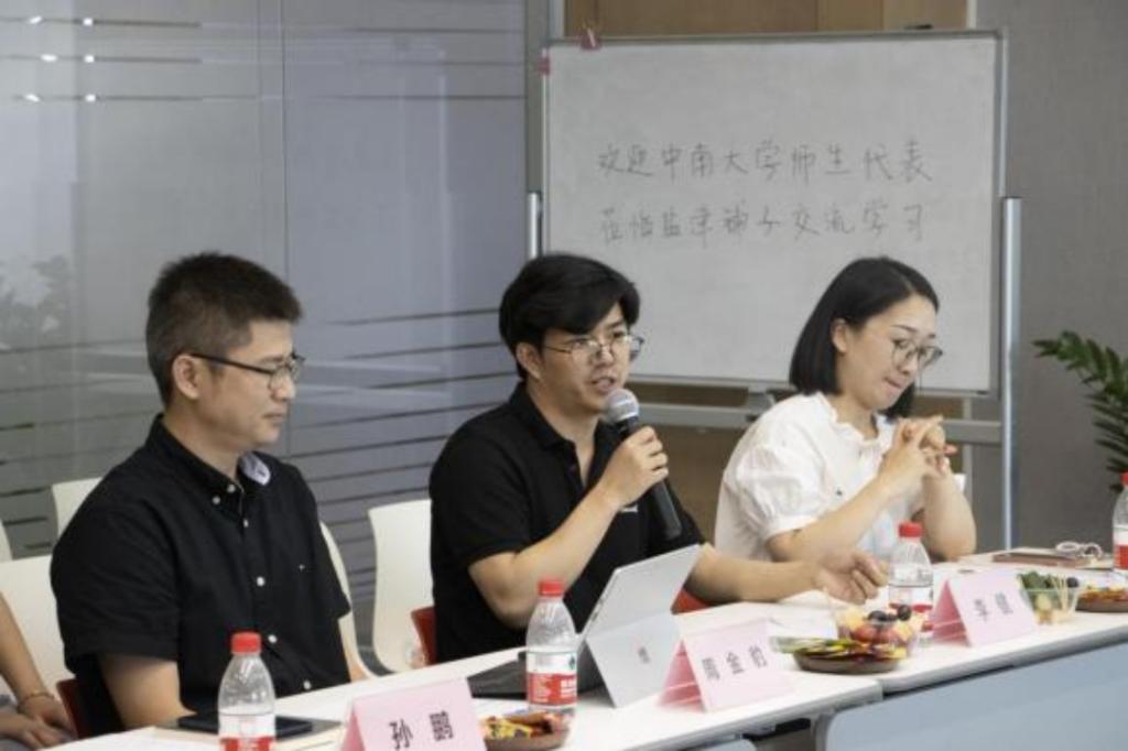师生代表走进中国休闲食品领域、农业产业化国家重点龙头企业——盐津铺子食品股份有限公司开展走访调研活动,并与盐津铺子集团副总经理李汉明、张磊,设备动力中心总监顾必飞、人力资源高级经理袁公盼及优秀校友代表开展交流座谈。