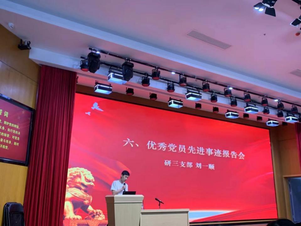 研三支部刘一顺进行优秀党员事迹报告分享