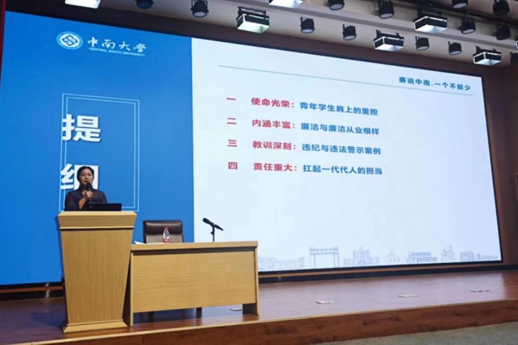 培训会上,党委黄亚副书记作了以“扣好第一粒扣子”为主题的廉洁教育。黄亚副书记指出,中南学子应廉洁修身,以廉洁模范为榜样,自觉提升个人思想道德境界。黄亚副书记向即将迈向新征程的毕业生党员寄语:“勿以恶小而为之,勿以善小而不为”,希望中南学子践行忠诚干净担当,廉洁自律坚守底线。