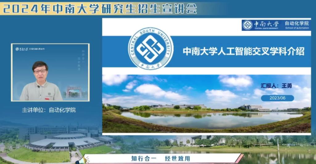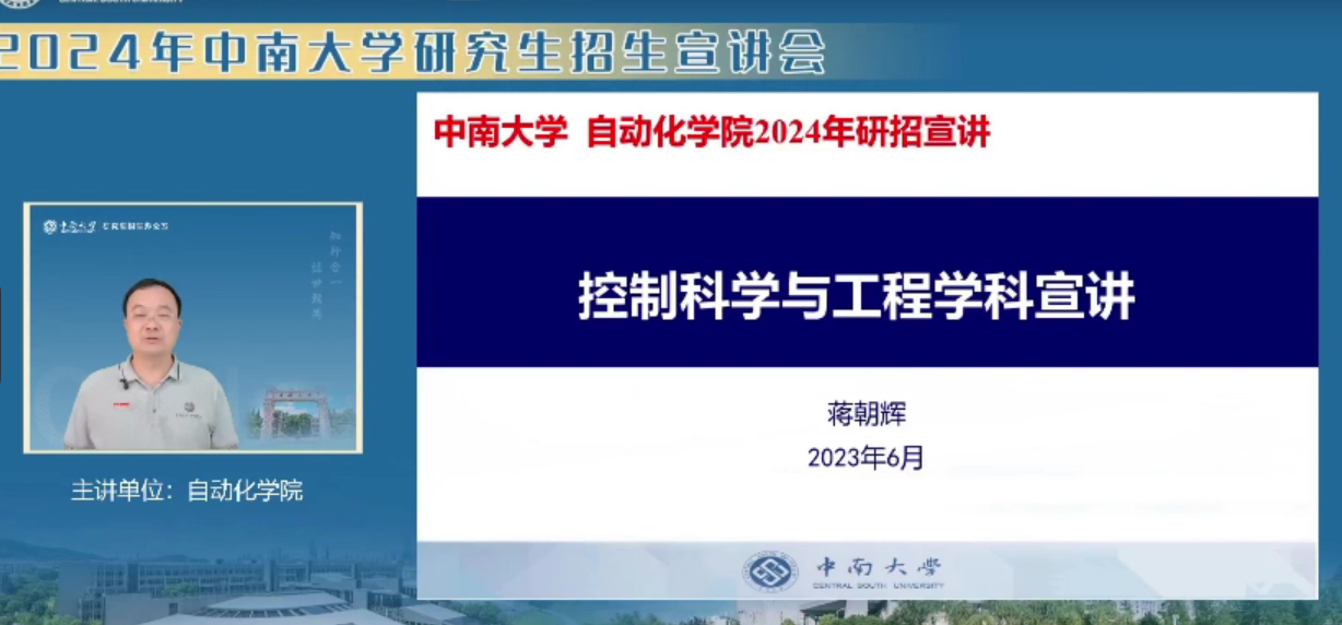 的基本情况。尔后,中国工程院院士桂卫华教授在直播间寄语广大学子,他勉励同学们磨练坚忍不拔的意志、拥有开放包容的精神、培养善于沟通的能力,并期待大家求实创新,研以致用,宏图大展。