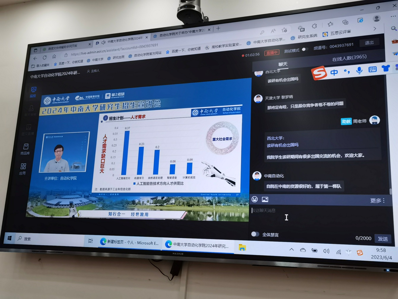 于2023年6月4日上午举办主题为“‘自’慧创新,‘动’察世界”的2024年研究生招生直播宣讲会。活动前期,彩世界