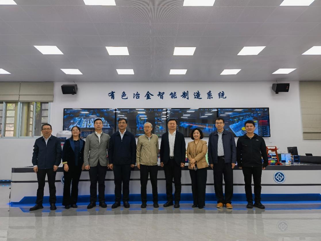 在有色冶金智能制造系统实验室,高擎一行参观了等比例复刻的典型锌冶炼过程物理沙盘。该沙盘内嵌真实的智能控制系统,与工业现场数据实时通信,并搭载了海量工业机理元模型,实现了虚实环境交互。可直观感受智能制造系统如何实现对真实问题的快速求解、决策优化与验证测试。