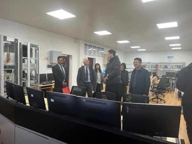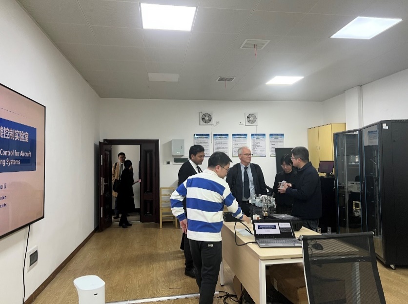 随后,Stephen Eggins一行来到“飞机起降系统智能控制”实验室、“工业互联网创新”实验室及“轨道交通安全监测”实验室参观指导,与陈志文、陈致蓬、吴德浩等老师就实验室建设规划、技术创新应用等方面进行了交流。