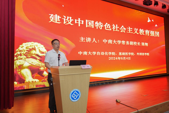 6月5日下午,学校常务副校长陈翔在信息楼108报告厅以“建设中国特色社会主义教育强国”为题为彩世界