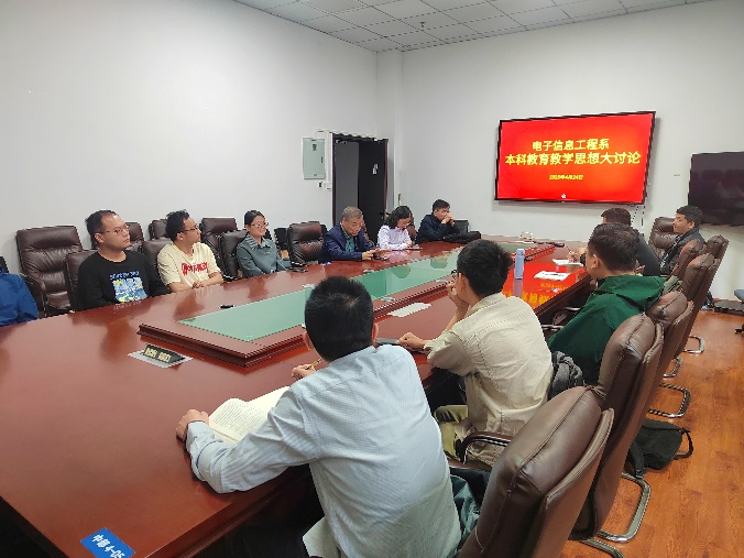 4月24日上午,电子信息工程系于信息楼216会议室开展本科教育教学思想大讨论,会议由系主任杨德贵主持,电子信息工程系全体教师参加。