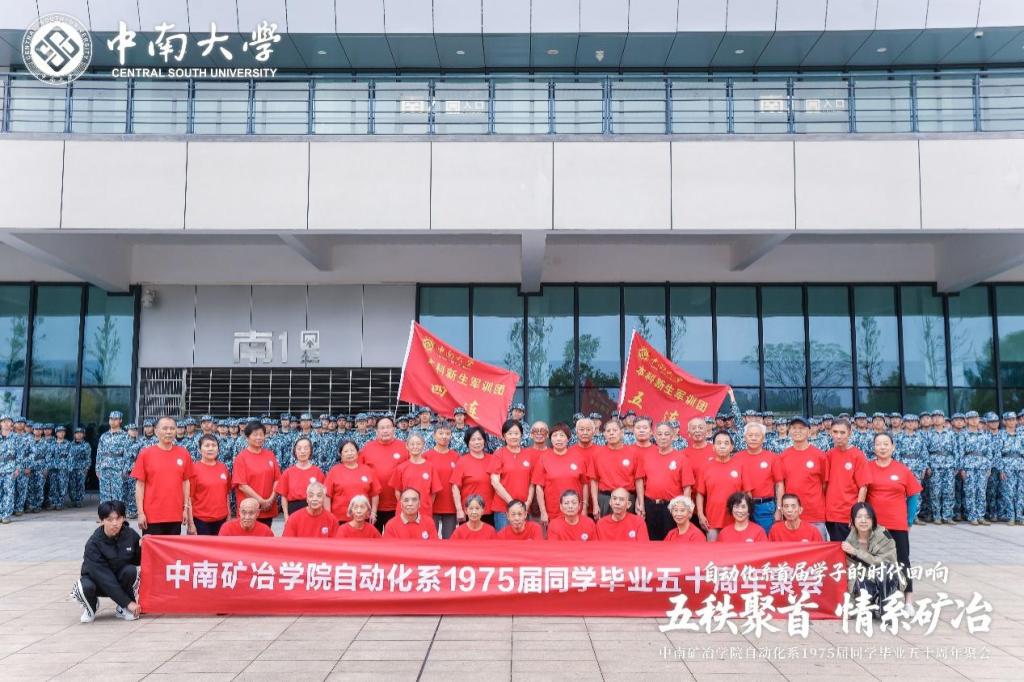 在新时代展现出的蓬勃朝气。校友座谈会上,桂卫华深情回顾了五十年前的求学时光,言语间充满对同窗情谊的珍视与对五秩聚首的欣喜。易险峰也亲切说道,此次相聚是跨越半个世纪同窗情谊的延续,希望校友们常回“家”看看。下午,校友们到岳麓山校区民主楼、潇湘校区校史馆参观并偶遇了正在军训的2025级本科新生,学长学姐的深情寄语和学弟学妹的热烈掌声共同定格下薪火相传的感人画面。