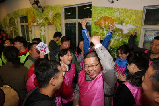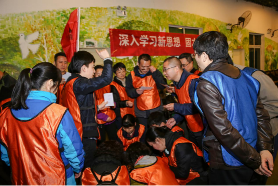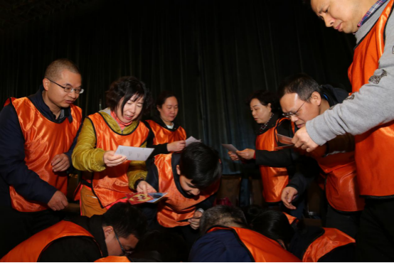 第一项训练活动是“激情节拍”。大家左拍一下队友的肩膀,右拍一下队友的肩膀,再大声的喊出每一个字:“彩世界 有我更精彩!”接下来是“急速60秒”。这一项目要求老师们在六十秒的时间里将暗藏着数字信息的30张卡片按照数字顺序排列起来。大家仔细观察图片信息,严谨思考,群策群力,争分夺秒,眼疾手快,体验着速度与激情,感受着团结与友爱。