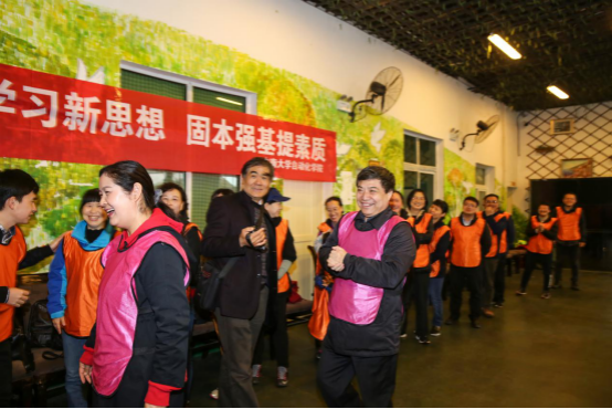 在专业素质拓展教练的指导下,全体老师上了一堂别开生面的训练课。通过训练,老师们在短时间内直观感受了团队协作及相互沟通的重要性,进一步提高了集体意识与团结协作精神,增强了各科研团队的凝聚力和战斗力。