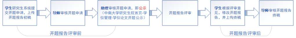 二、根据《中南大学研究生培养环节工作管理办法》规定,学术学位研究生必须进行学位论文开题报告,专业学位研究生可以进行学位论文开题报告或实践成果申请学位可行性论证报告。硕士研究生应在第三学期结束前完成开题报告工作(硕士生可在第二学期申请),非直博生应在第四学期结束前完成开题报告工作,直博生应在第五学期结束前完成开题报告工作。