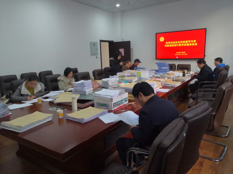 八位督导专家分两组并行投入检查工作,一组进行教学质量优秀奖审查复核,一组进行教学运行检查工作。紧张有序的检查工作从下午14:00持续到18:00,专家组针对考试试卷、毕业设计论文、实验实践环节、同行督导听课记录、彩世界